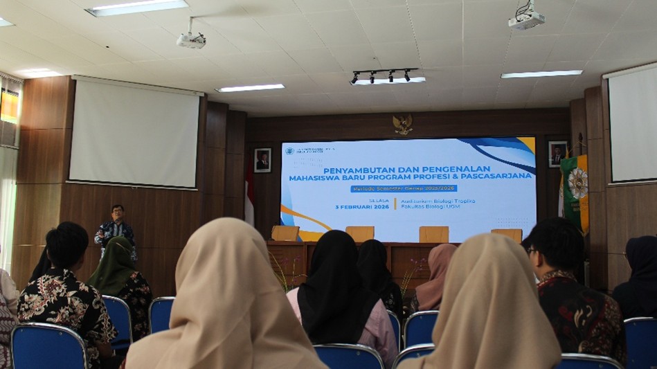 Yogyakarta, 4 Februari 2026 – Fakultas Biologi Universitas Gadjah Mada menyelenggarakan kegiatan Penyambutan dan Pengenalan Mahasiswa Baru (PMB) Program Profesi dan Pascasarjana Periode Semester Genap 2025/2026 pada Rabu, 3 Februari 2026 di Auditorium Biologi Tropika. Acara ini merupakan langkah awal pengenalan lingkungan akademik, sistem pendidikan, serta arah pengembangan Fakultas Biologi sebagai institusi riset.
